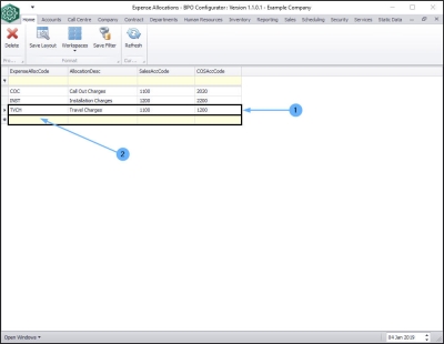 2. A new row has been added to the data grid, ready for the next new Expense Allocation code, if required.