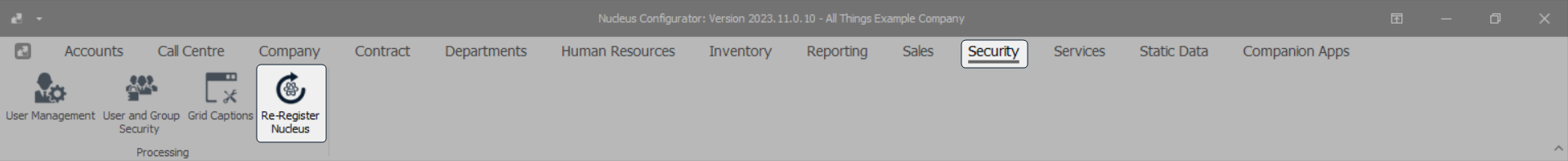 In Nucleus Configurator: Ribbon Select Security > Re-Register Nucleus