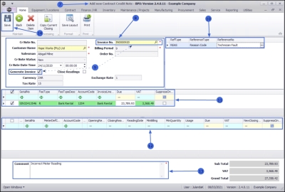 The Contract Credit Notes tab from the Customer Listing screen is a brief handling of the process. Mention will be made where the Credit Note without Re-Invoice and with Auto Re-Invoice selection can be made. For a detailed handling of the process click on the link to be redirected to Contract Credit Notes - Without Re-Invoice and Contract Credit Notes - with Auto Re-Invoice.