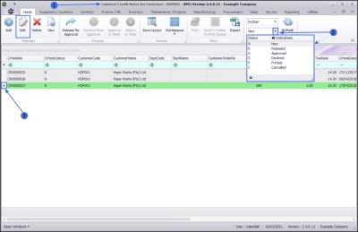 3. Click on the row selector in front of the Credit Note you wish to remove from approval.