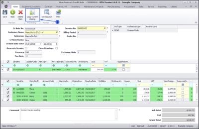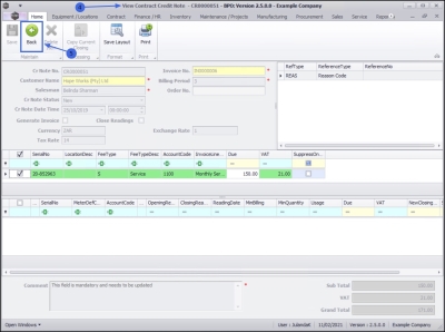 7. In the Comments text box, type in the relevant reason for this contract credit note.
