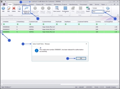 • The credit note number CR[credit note number], has been released for authorisation successfully.