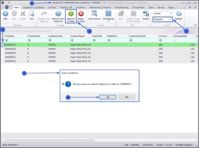 • Are you sure you want to Approve cr note no. CR[credit note number].