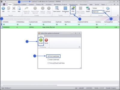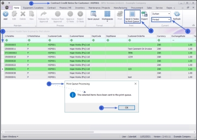 This option gives you the ability to send Credit Notes to the Print Queue directly from the Contract Credit Notes for Customer listing screen (instead of going to the Print Queue Reprint screen), which means that a batch of credit notes can be forwarded to the customer.