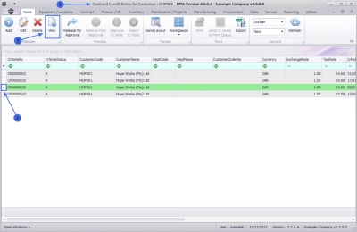 3. Click on the row of the Credit Note you wish to release for Approval.