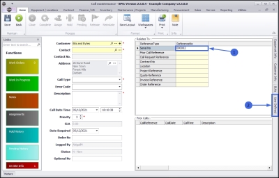 This information will also reflect in the Call Maintain screen where the asset is linked. Although the fields can be viewed from the Call Maintain screen, the actual information can only be edited in the Asset Maintain screen.