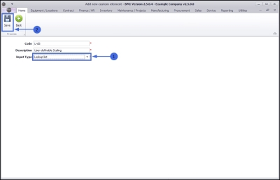 2. In this example, there is a pre-existing Code . This means that a User Defined custom element has already been added to another asset in the system.