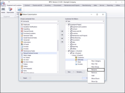 - All Categories and All Tabs can be renamed but New Groups can be renamed and have any Commands added to them.