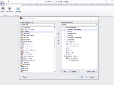 - New categories, tabs and commands can also be added by using the New button at the foot of the Customize the Ribbon screen.