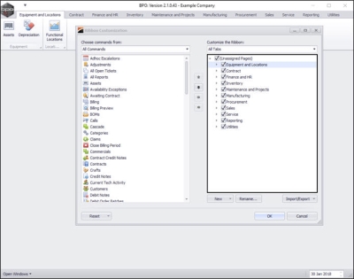 - You will see that this is a list reflection of your Equipment and Locations ribbon tab and its commands as currently displayed in the ribbon.