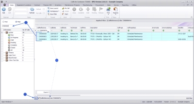 Note that the Call Reference column filter row added the ‘%’ variable at the end of the Call Reference, and the Edit Filter row now contains the filter details: [Call Reference] Like 'CN00006%'. - To remove the Filter, either, Delete or backspace over the text in the in the Filter Row of the Call Reference column, or click on the [X] in the Edit Filter row.