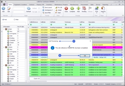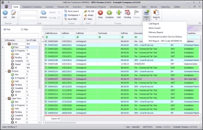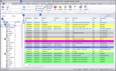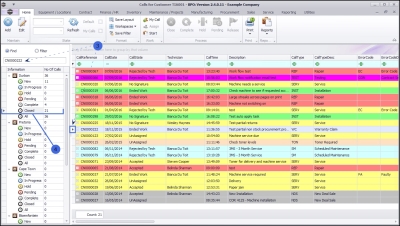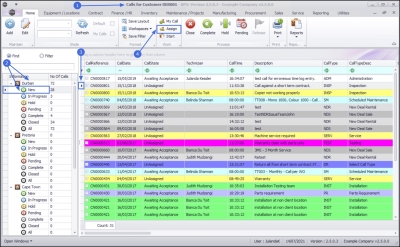 - The Calls are colour-coded by Call Type, e.g. all Service Calls are displayed as yellow.