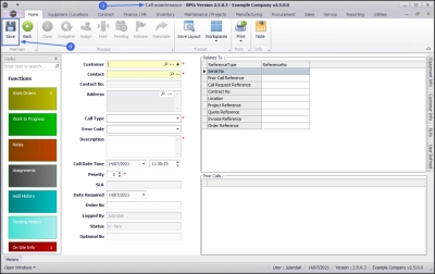 - The example has the Reference CN00006 entered, which will search for and display all the Call References that start with CN00006.