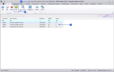 - The warranties you have linked to the work order will be displayed in the data grid.