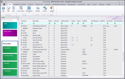 The Stock Control tile will direct you to the Stock Control for Part screen. Here you can Add, Edit and Delete a part stock control Reorder Point Method and a part stock control Min/Max Reorder Method. |