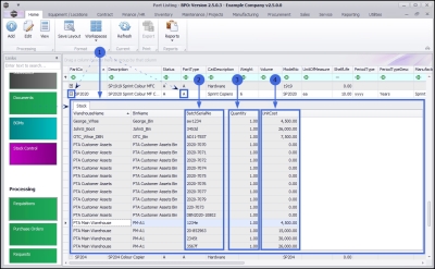 - Scroll across the data grid to view all the columns containing the part definition information.