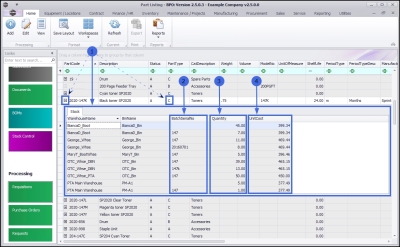 - Click on the expand button in the row of a C-class part definition to open the Stock frame.