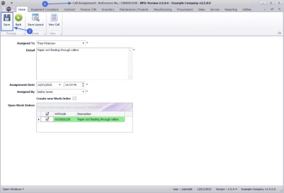 - Assignment Detail: This field will populate with the call reference description. Add the technician assignment details as required.