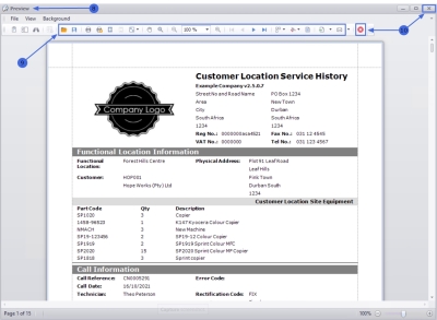 - The Customer Location Service History Report will display in the Report Preview screen.