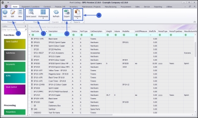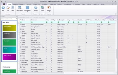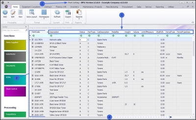 On the left side of the Part Listing screen is the Links panel which contains the part definitions Functions and Processing tiles. Each tile, when clicked on, will take you to further information concerning the selected part definition. These tiles are also available in the View Part and Edit Part screens.
