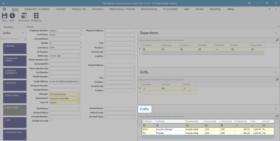 • When you add a new employee, you will link a Craft to the employee in the Crafts Panel - this is where you will include the following details:
