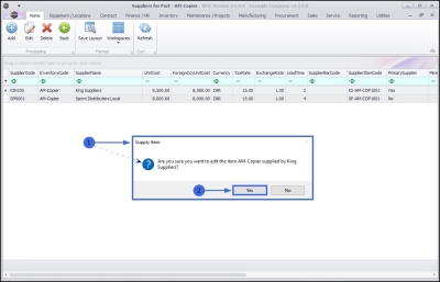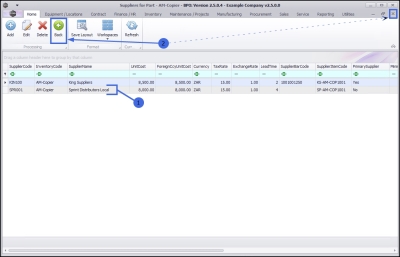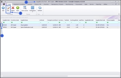 - The Suppliers for Part - [] screen will open, with a list of suppliers that you use to procure this part.
