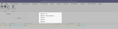- In the example below I will be creating a Chart of Accounts with 2 segments (Site and Employee Department). If you are not segmenting your accounts, then Segment fields should all be blank (please consult with your CO3 Support Analyst.