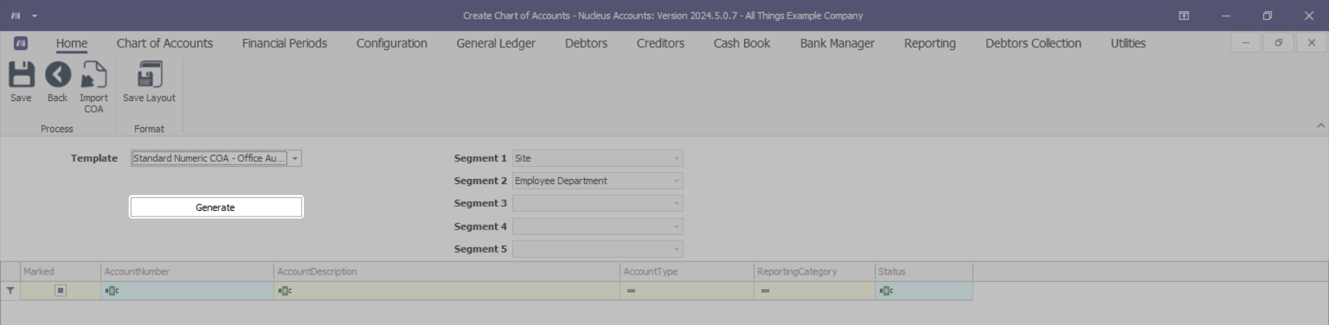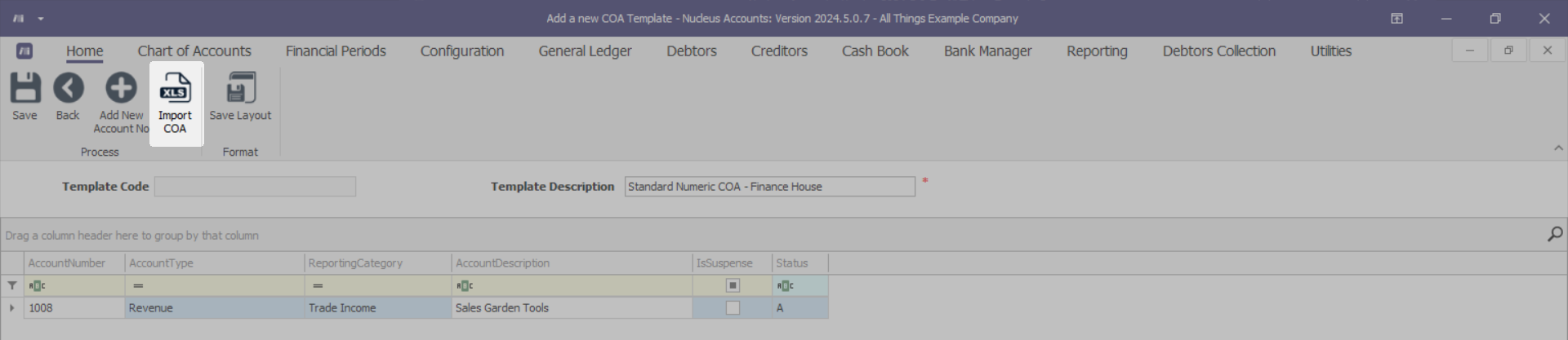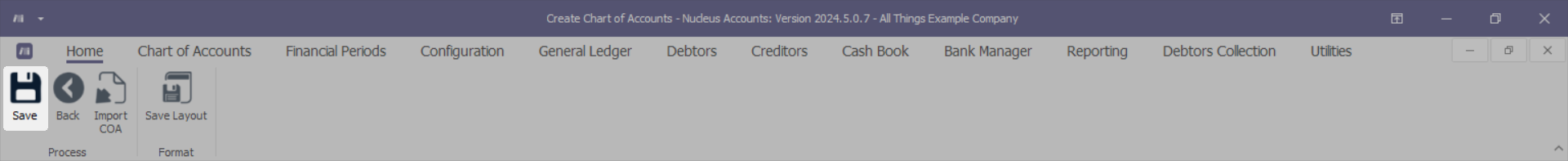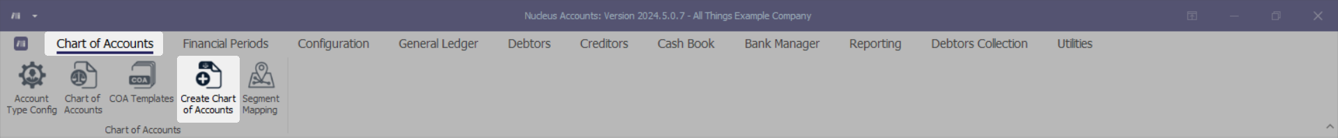 Ribbon Select Chart of Accounts - Create Chart of Accounts