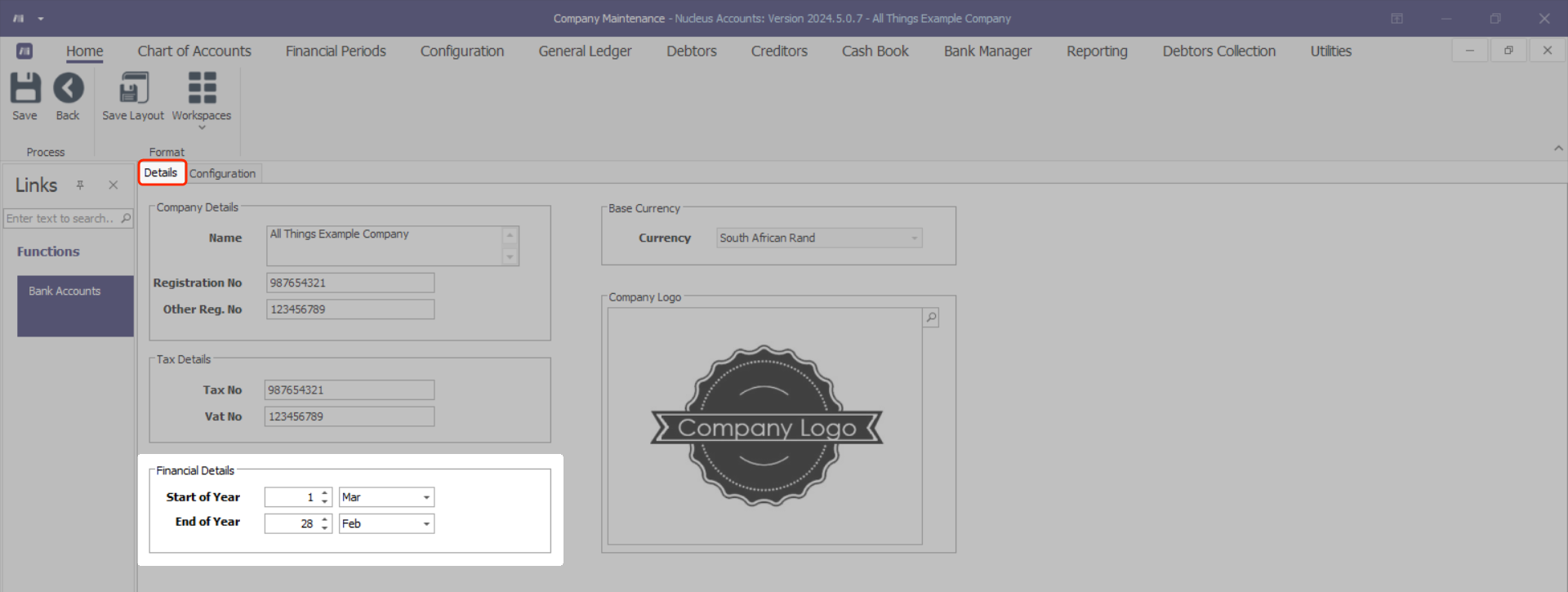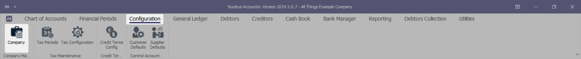- The start of the Financial Year will depend on the company's inception, and is configured during initial company set up within Nucleus Configurator: Initial Financial Period Configuration.