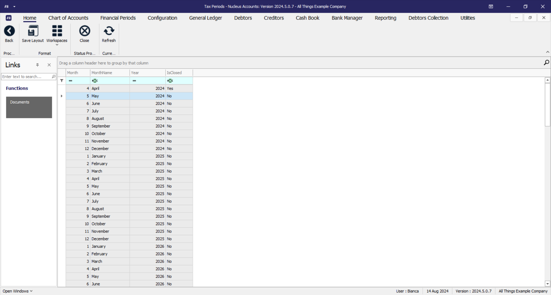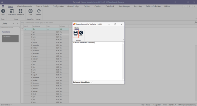 - This screen is divided into a Links panel, and Tax Periods listing.