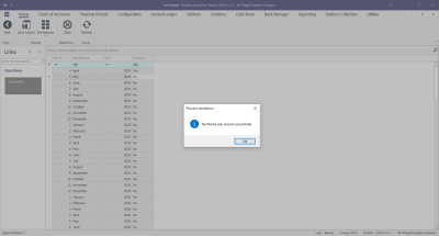 - A message box will come up stating; Tax Period was closed successfully.