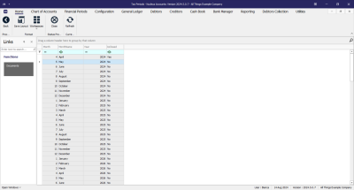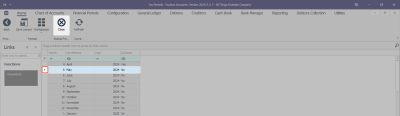 - Financial Periods - Sync with Tax Periods: Synchronises the financial and tax periods so that they are processed in a 1 to 1 relationship, i.e. when the current financial period is closed, the current tax period will auto close and the next tax period will auto open. This configuration will only be used where the company processes monthly tax periods. If another period is used, e.g. quarterly, then the tax period would need to be manually closed once all tax processing has been finalised.