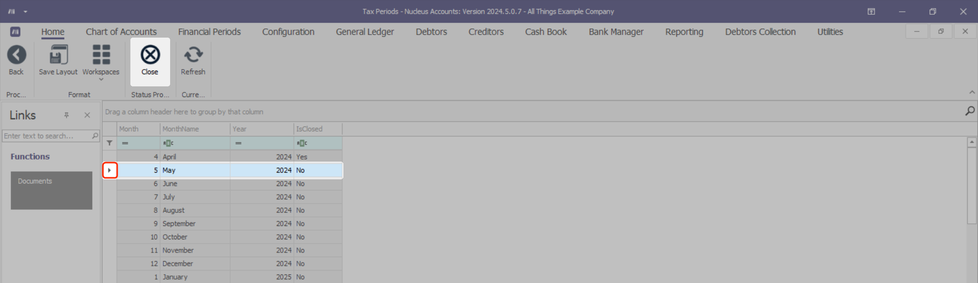 - Select the Tax Period that you need to close.