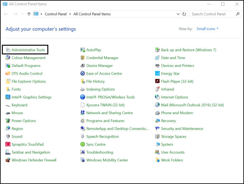 - Click on Administrative Tools.
