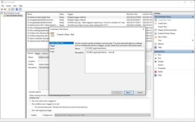 - Type in a Name and Description for the application's scheduled task. It is recommended that you start the description with CO3 and then note the application name. This will keep the CO3 applications organised together.