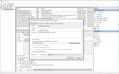 - The application's scheduled task Properties screen will display, with the General tab selected.