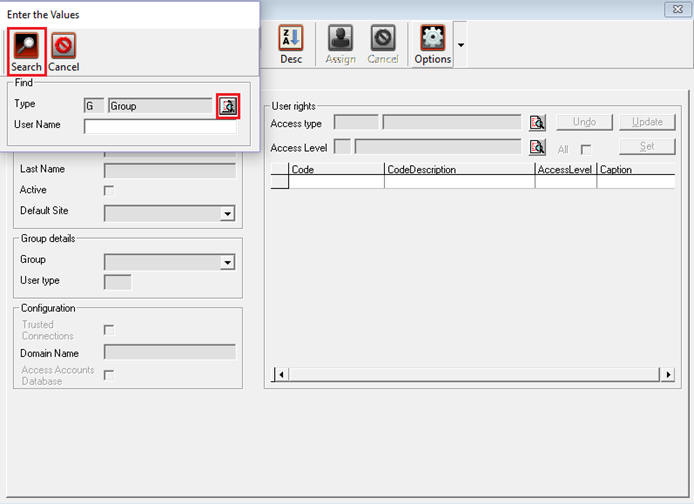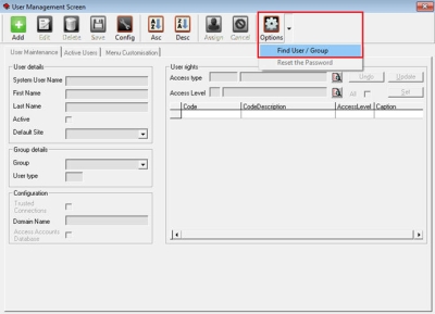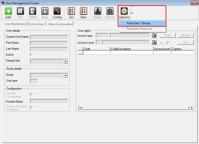 - Click on the Options menu and select Find User/Group