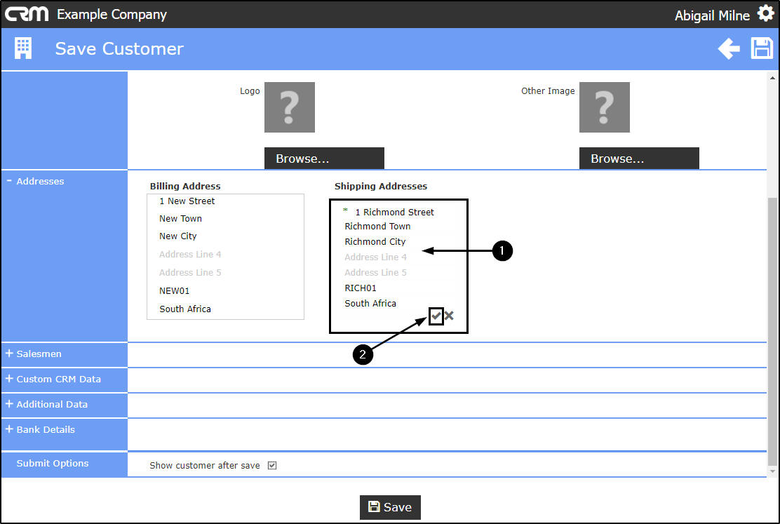 - Logo: You can click on the Browse button to search for and select a main company image for this customer.