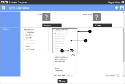 - Note: There can be more than one Shipping Address. For example, one customer can have many sites (shipping Addresses) where machines can be delivered and/or serviced.