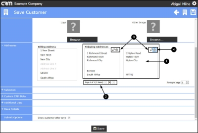 - In this example, you can view 3 of the Shipping Addresses in the frame.
