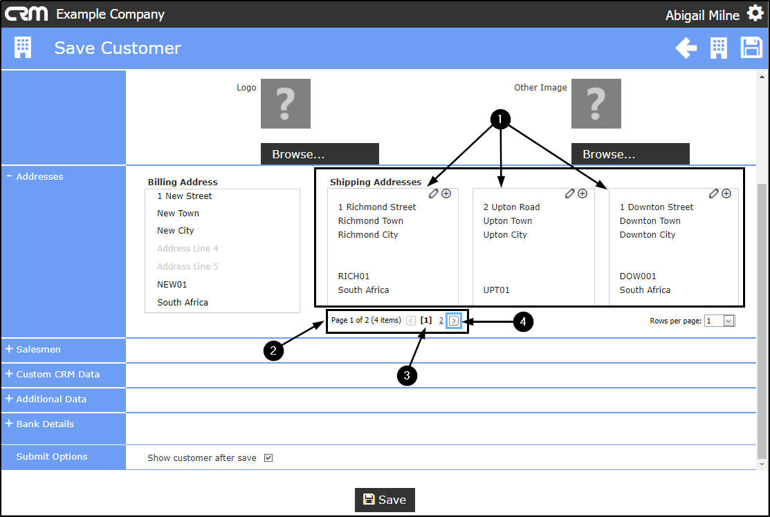 - To view the fourth Shipping Address, click on the right arrow to move onto the next page.