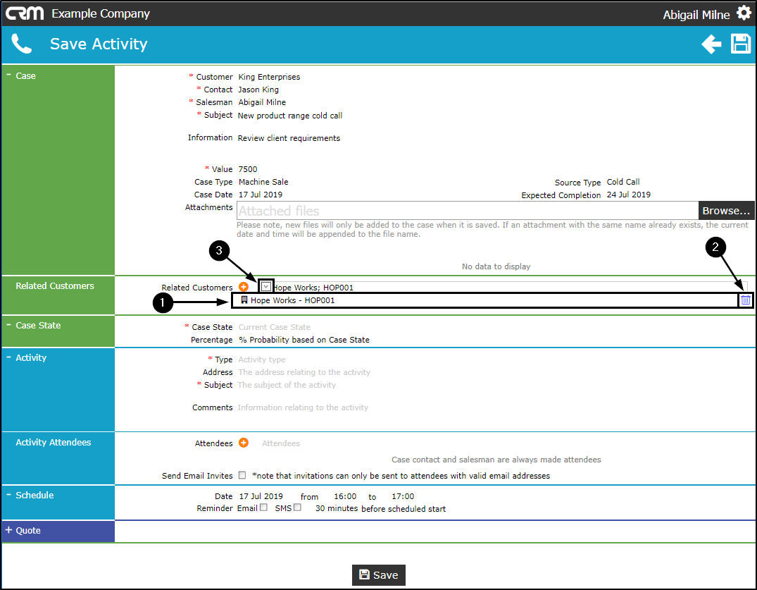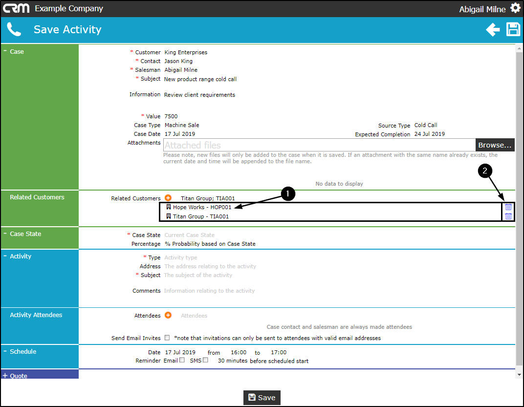 - The additional Attendee Name will populate the Related Customers field.