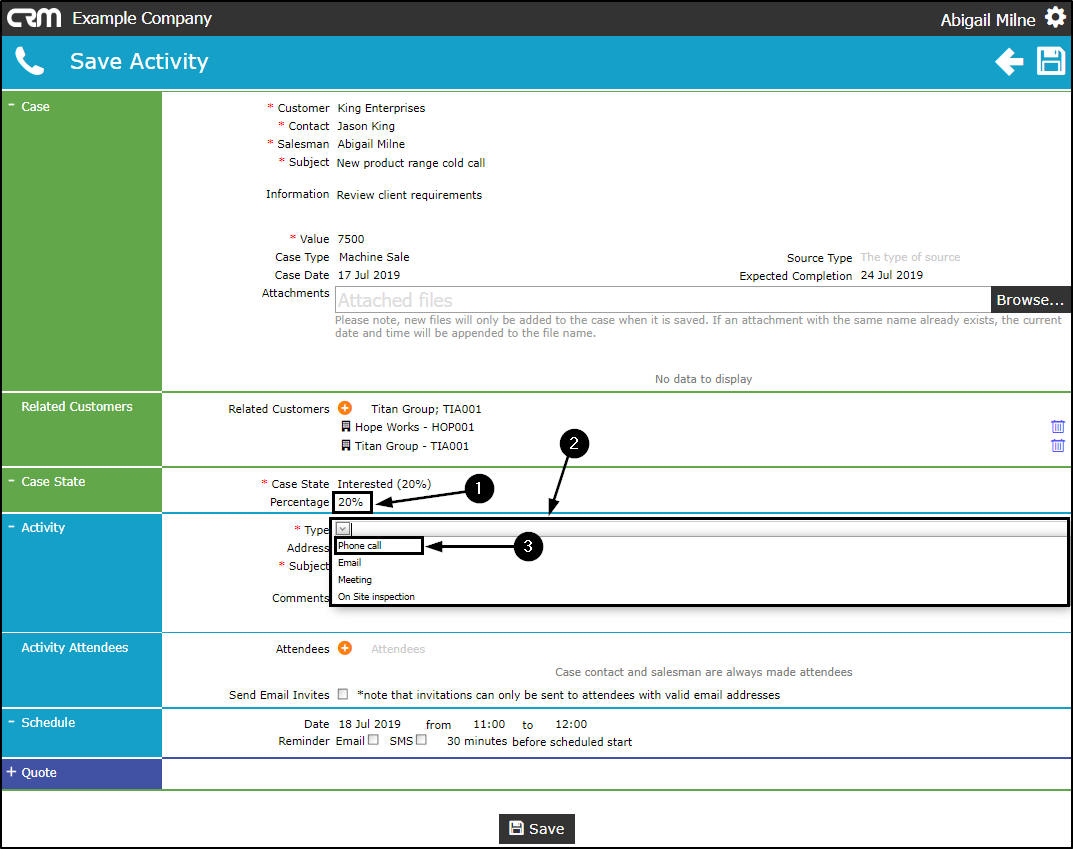 - Select from this list the applicable type (e.g. Phone call).