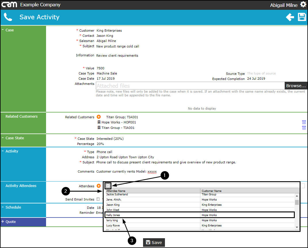 - Select the Attendee that you wish to add to this Activity.