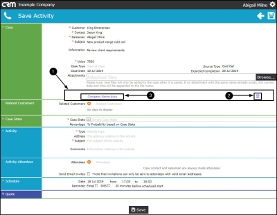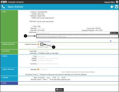 - Note: Although this is not a mandatory field, it is an important one. A salesman may not always remember extra details specific to a customer. Here you can include any extra pertinent information that may help build good customer relationship which will help the salesman achieve / win this case.