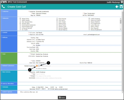 - A Cold Call is a quick and easy way to raise a new Customer, Contact, Address, Case and Activity.