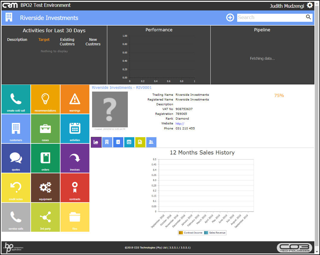 - A Create Cold Call for Customer Action button has been added to the Customer Dashboard Information frame. Navigating from this button will auto populate the selected Customer Details.