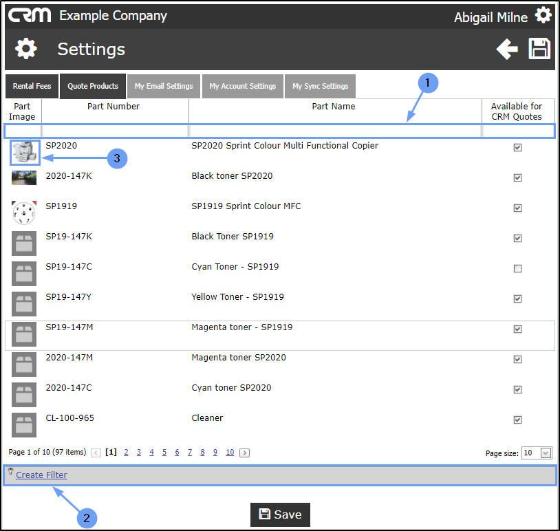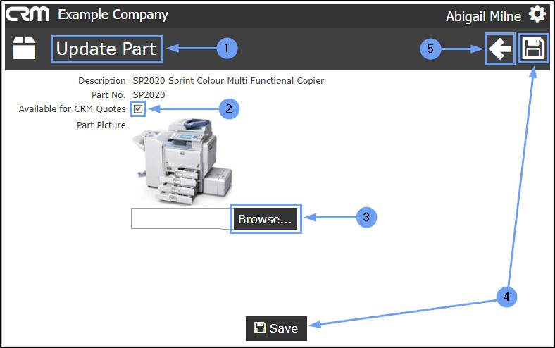 - Marking this check box will make this part code available for selection when adding single items to a quote.