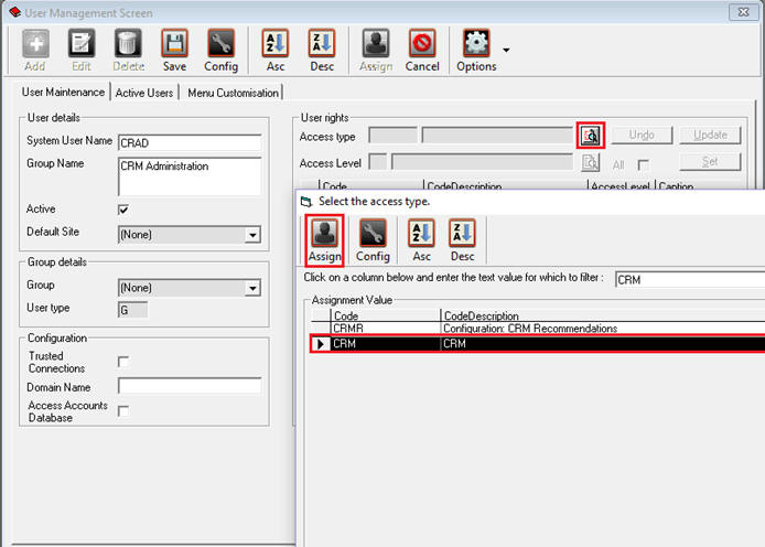 - Code: Click in this text box and type in a code specific for this CRM Lookup field.