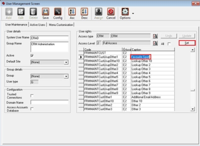 - Click on the 'Set' button. Note: If the Set button is not available, then reselect that line's access level.